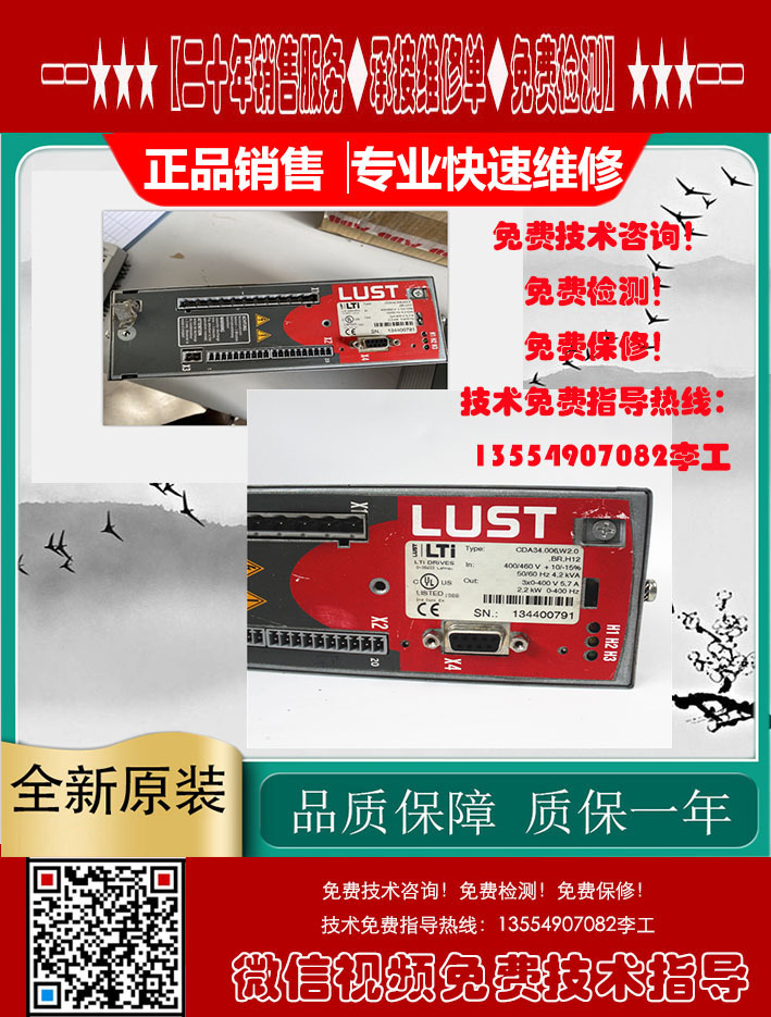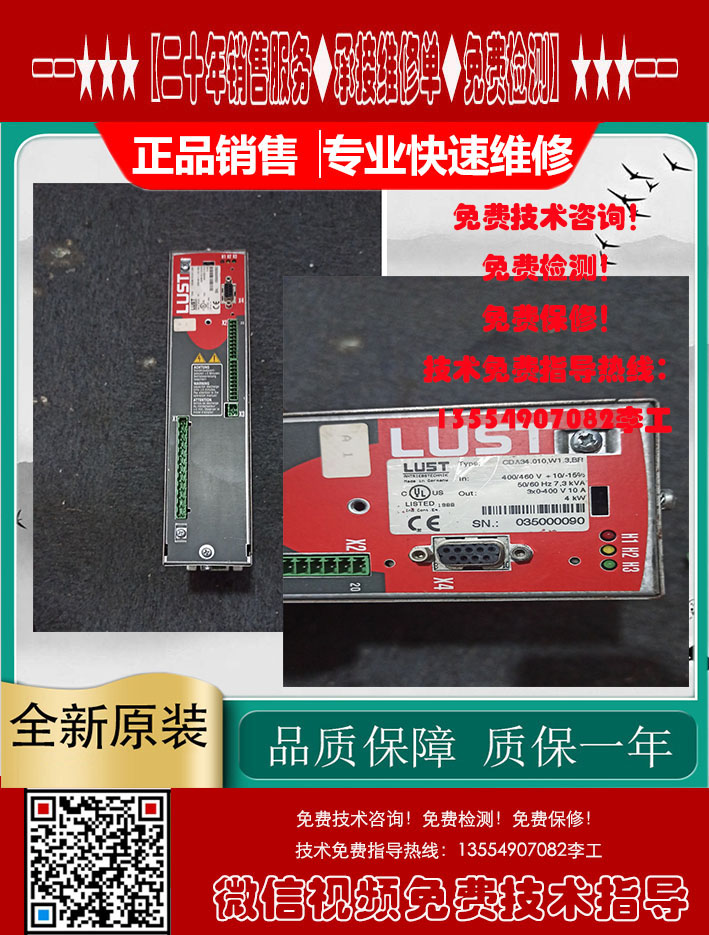 LUST路斯特变频器销售-维修测试视频 CDA34.010.W1.3.BR.HF 电源灯不亮故障维修 LTI 路斯特伺服驱动器专业维修,可测试