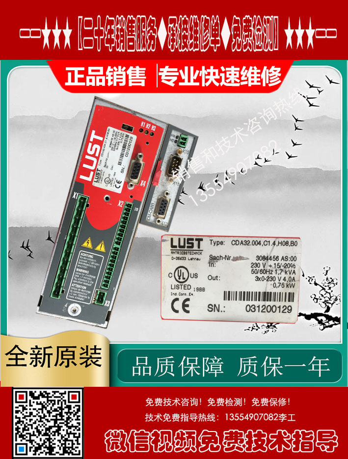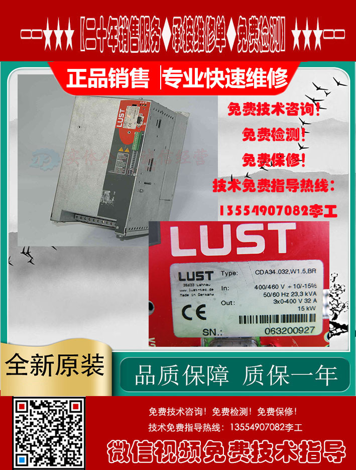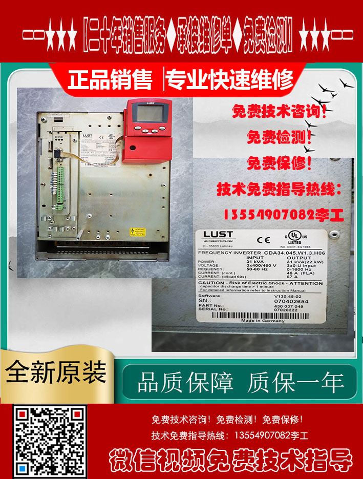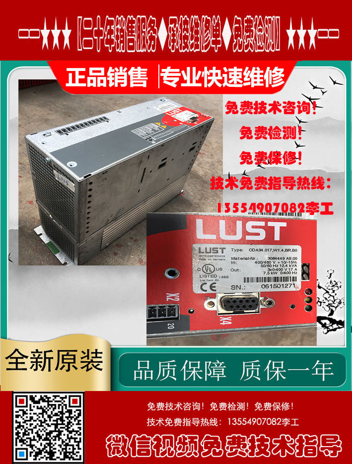 LUST路斯特变频器CDA32.008.C1.4.HF销售维修当天 LUST路斯特变频器 CDA32.004.C1.4.H08.B0 电源灯不亮 故障维修 LUST LTI 路斯特VF1000S变频器:VF1204S,VF1402S专业维修,可测试¥ 0.00立即购买