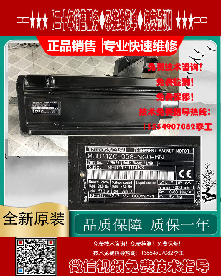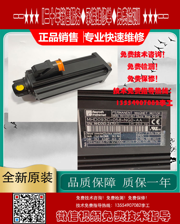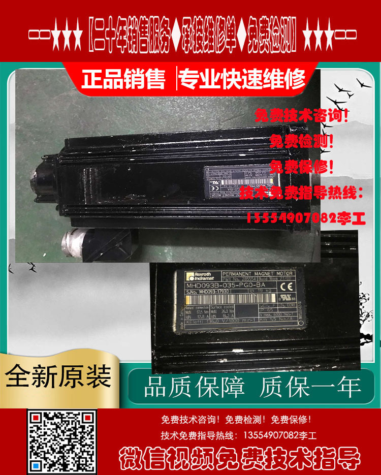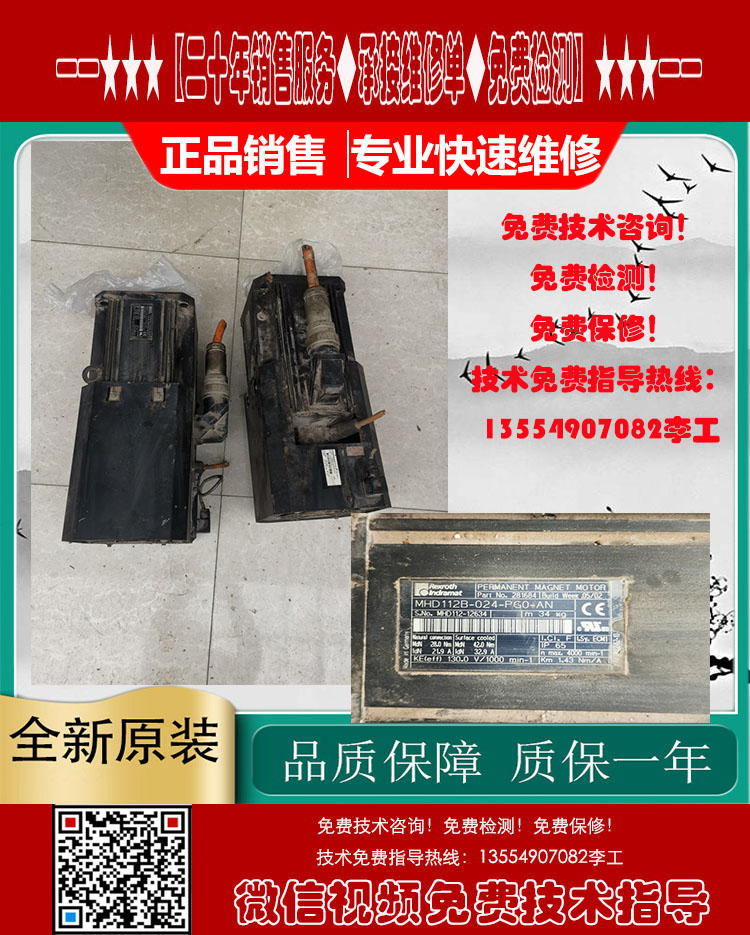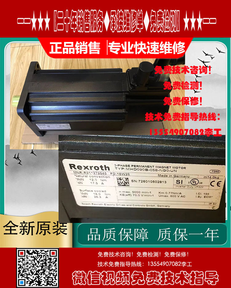 R911279545 MHD090B-058-NG0-UN 力士乐伺服电机维修常见的6种故障 1、编码器故障:编码器是伺服电机的核心部件也是易损部件,可对伺服电机进行编码器的维修和更换,借助美国进口先进检测设备进行可视化零点校对,确保编码器零点位置达到原厂标准,保证伺服电机的原厂电气性能无损。