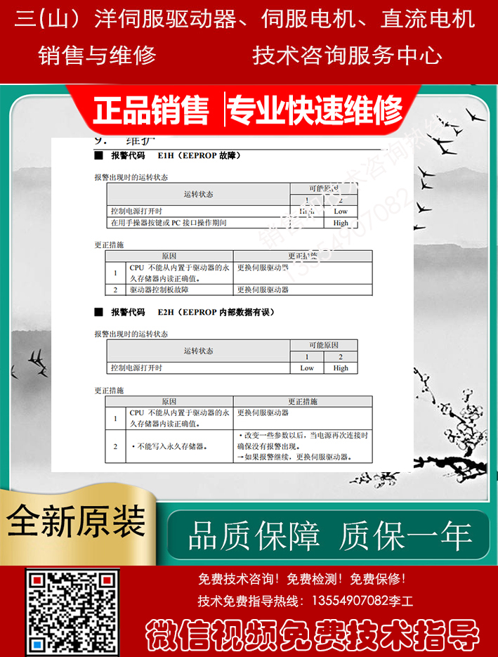 三洋伺服电机技术咨询,维修售后质量标准: