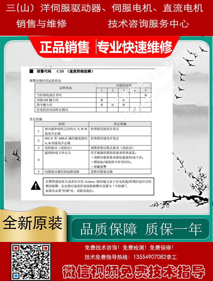 三洋伺服驱动器报警代码C2表示速度控制异常。 12