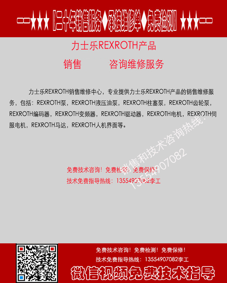 力士乐REXROTH伺服驱动器、伺服电机、柱塞泵、触摸屏销售与售后咨询维修服务中心