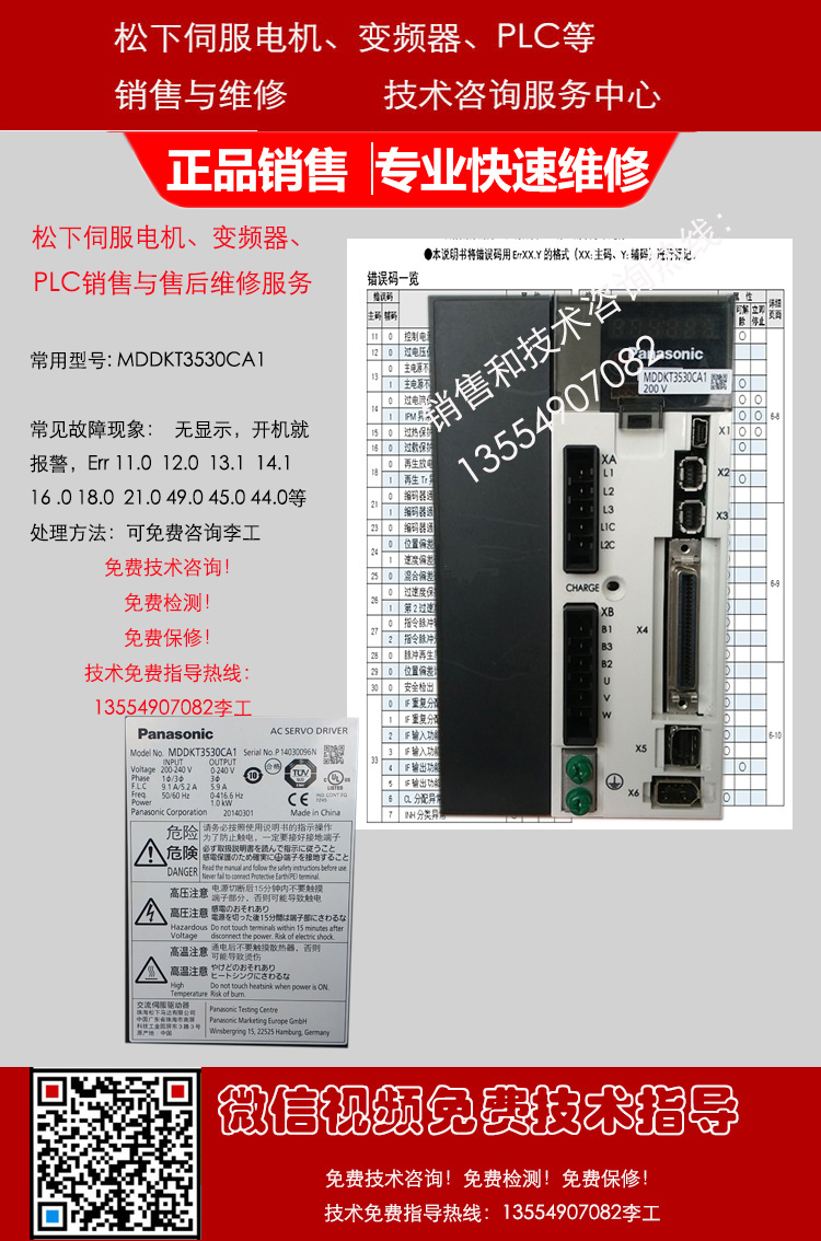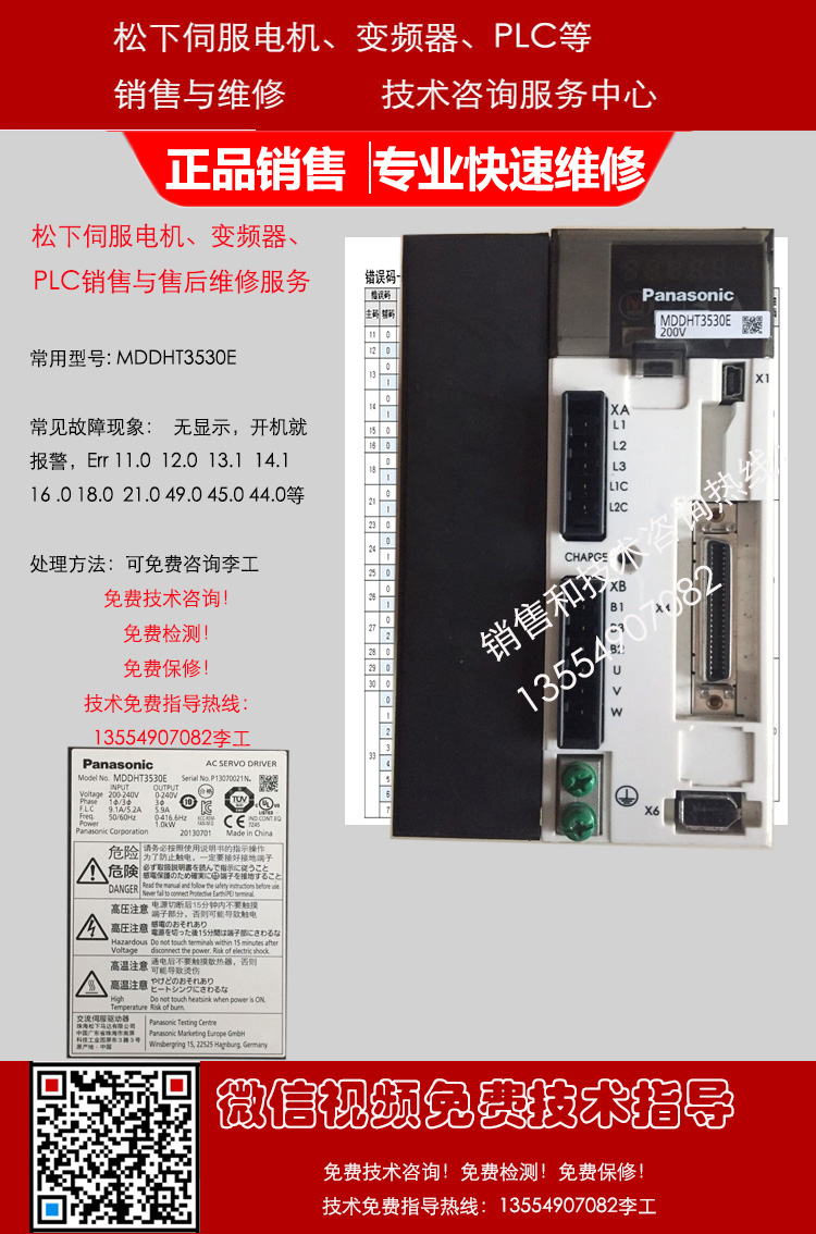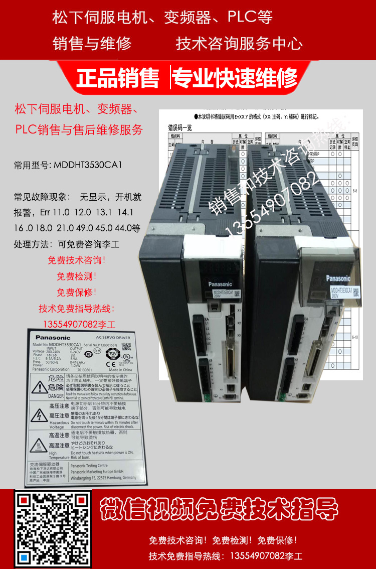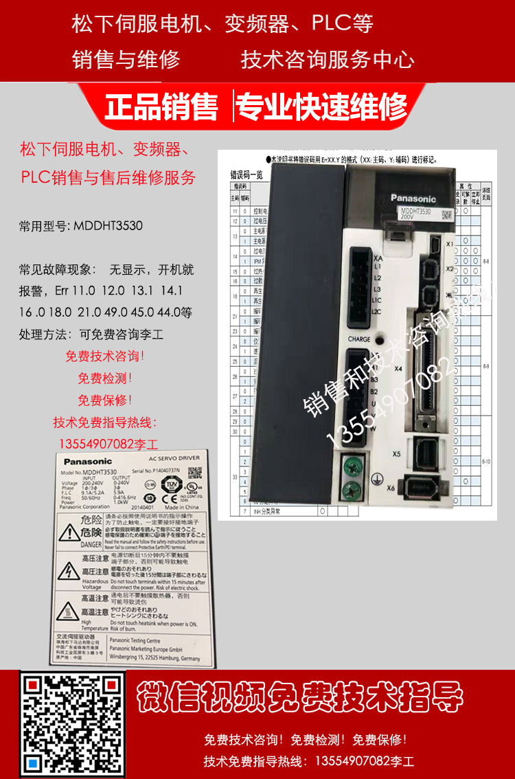 FANUC伺服驱动器维修,西门子伺服电机维修,伦茨伺服马达销售,伺服控制器维修    日本品牌    松下    A5    松下MINAS A5驱动器MDDHT3530 MDME102GCG MDDHT3530E MDDHT3530CA1 MHME102GCG MHME102G1H MDDKT3530 MDDKT3530E MDDKT3530CA1