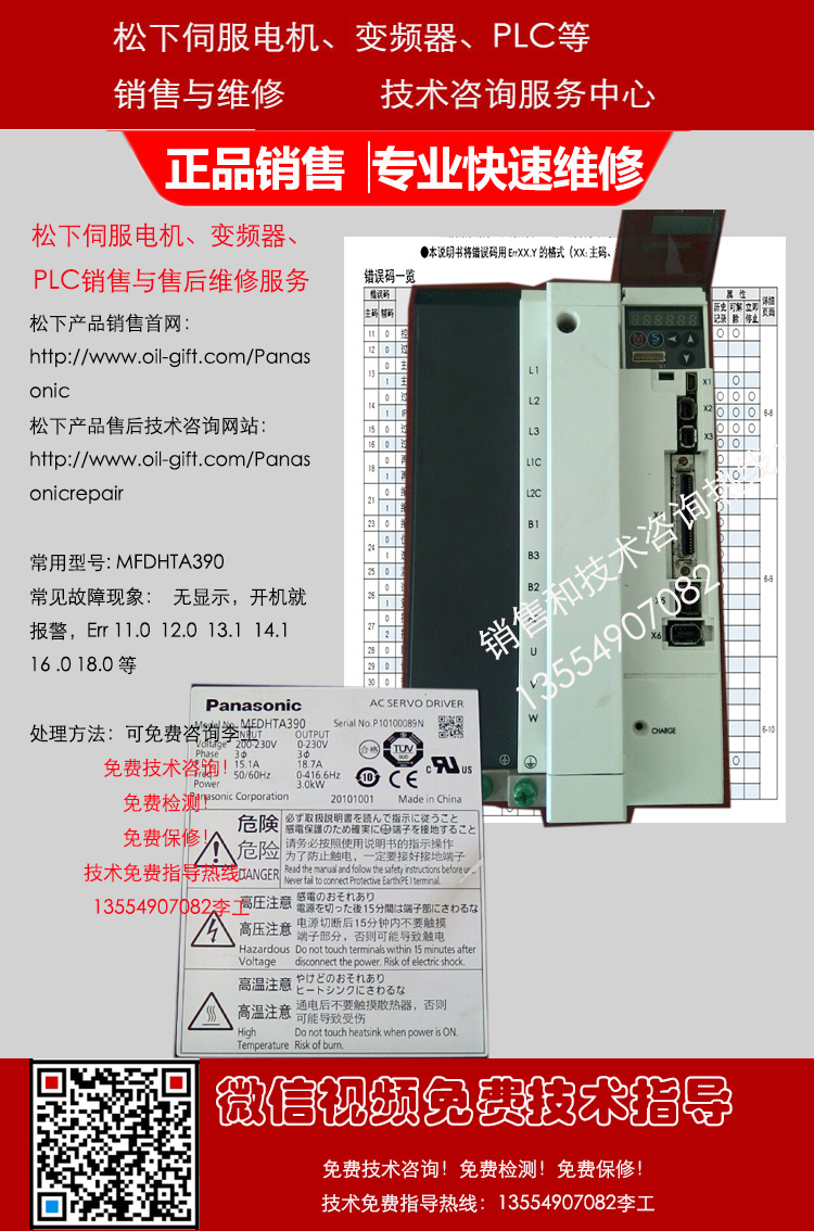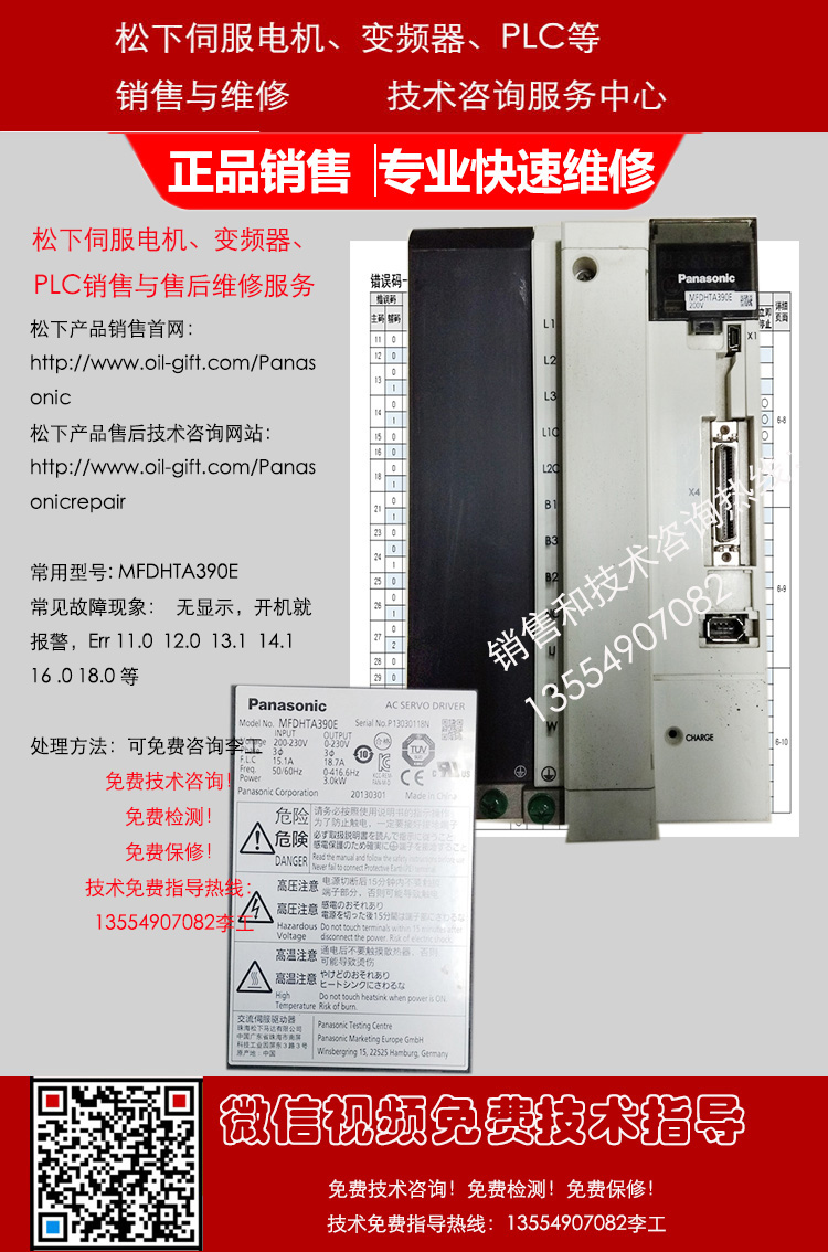 松下伺服电机维修故障:上电不运行、磁铁爆钢、磁铁脱落、卡死转不动、编码器磨损、码盘/玻璃盘磨损破裂、电机