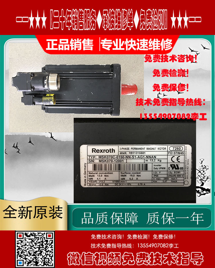R911309218 MSK070C-0150-NN-M1-UG0-NNNN Rexroth力士乐伺服电机销售-启动无反应-启动抖动不转-怎么处理维修?-维修视频