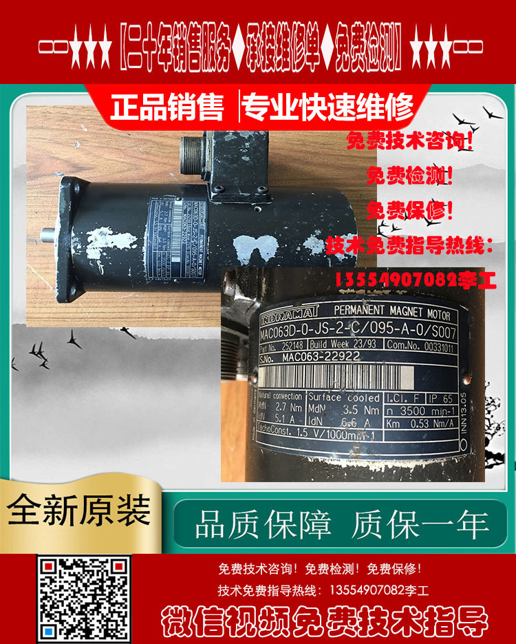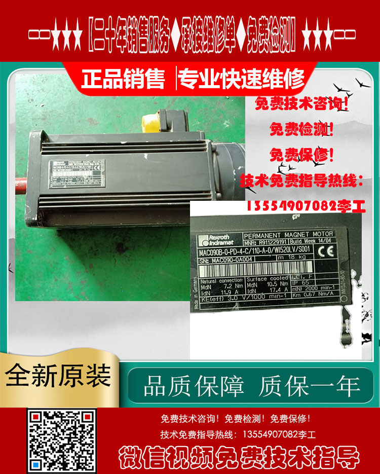 MAC092B-0-0D-1-B 力士乐伺服电机维修常见的6种故障 1、编码器故障:编码器是伺服电机的核心部件也是易损部件,可对伺服电机进行编码器的维修和更换